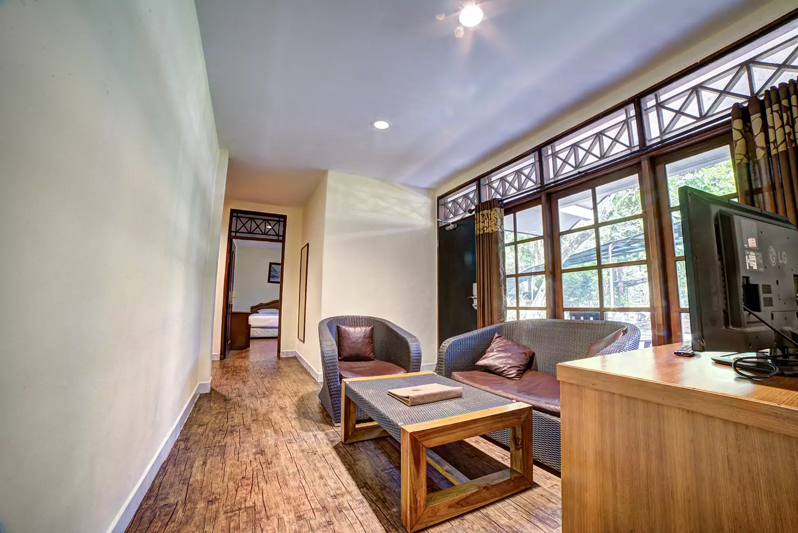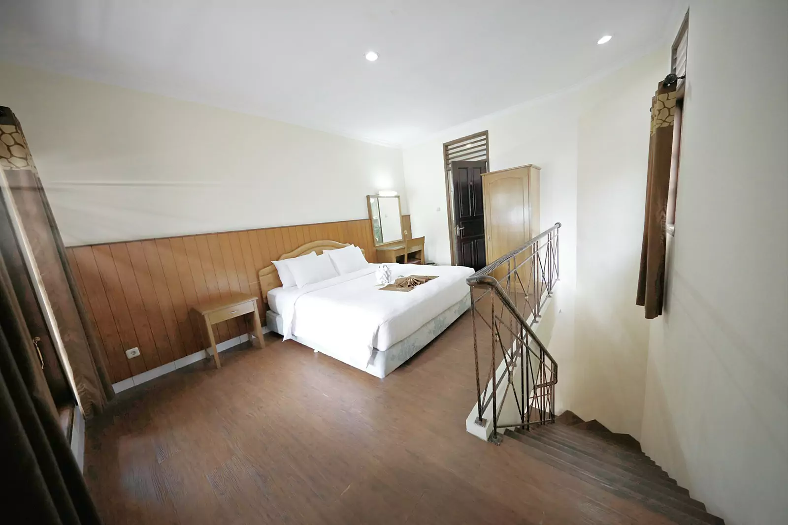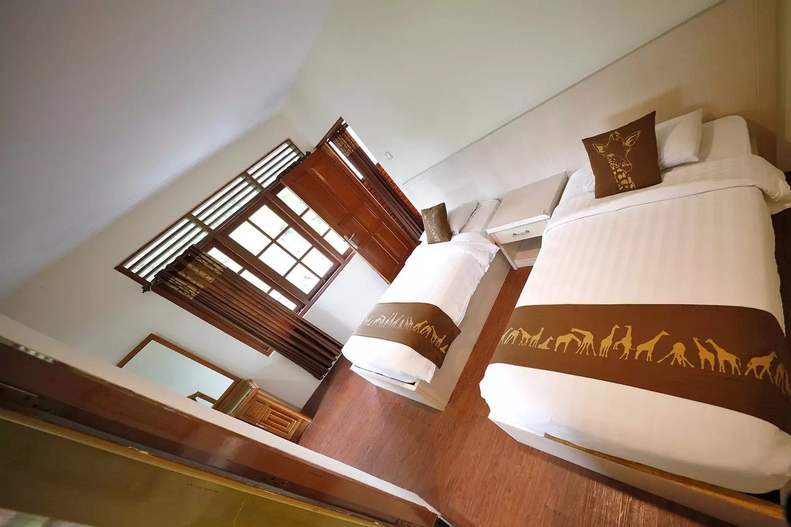 Deluxe Bungalow Zebra One Bedrooms surrounded by lush green gardens and the serene Swan Lake. This Bungalow offers a peaceful retreat with a forest-like ambiance. This one-bedroom bungalow provides a cozy yet modern stay, perfect for those who seek relaxation in nature. Conveniently located near the Hydroponic Garden and Recreation Area, it ensures easy access to fun and leisure activities.
