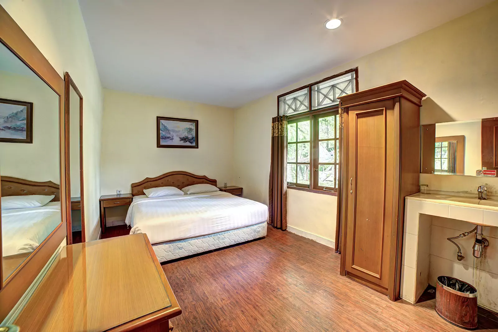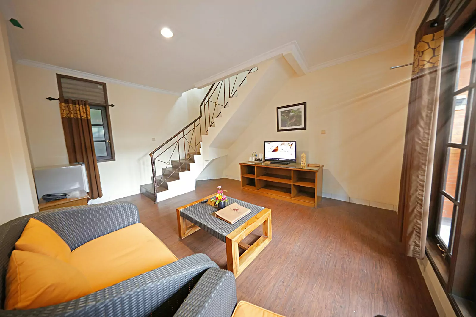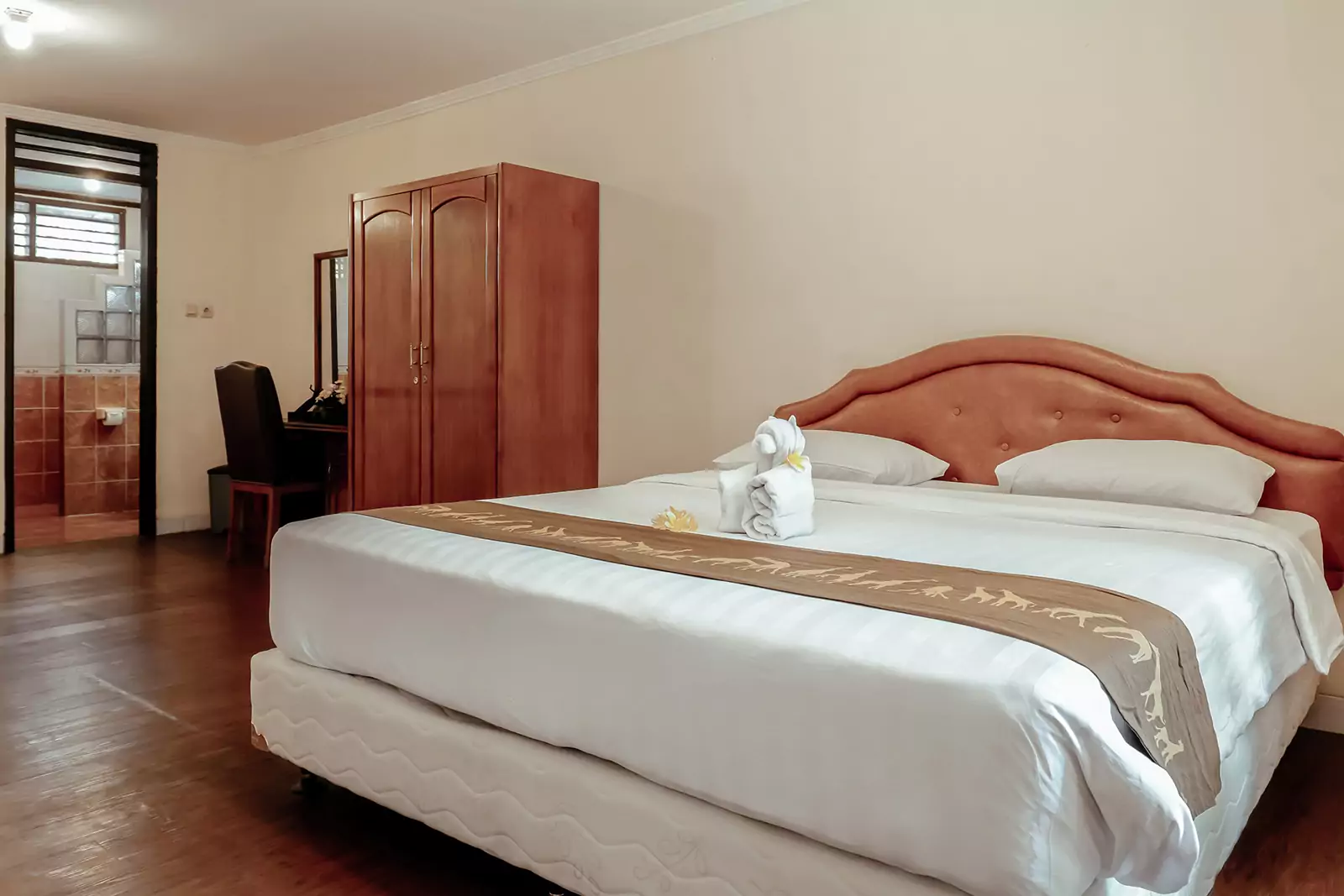 Deluxe Bungalow Zebra One Bedrooms surrounded by lush green gardens and the serene Swan Lake. This Bungalow offers a peaceful retreat with a forest-like ambiance. This one-bedroom bungalow provides a cozy yet modern stay, perfect for those who seek relaxation in nature. Conveniently located near the Hydroponic Garden and Recreation Area, it ensures easy access to fun and leisure activities.
