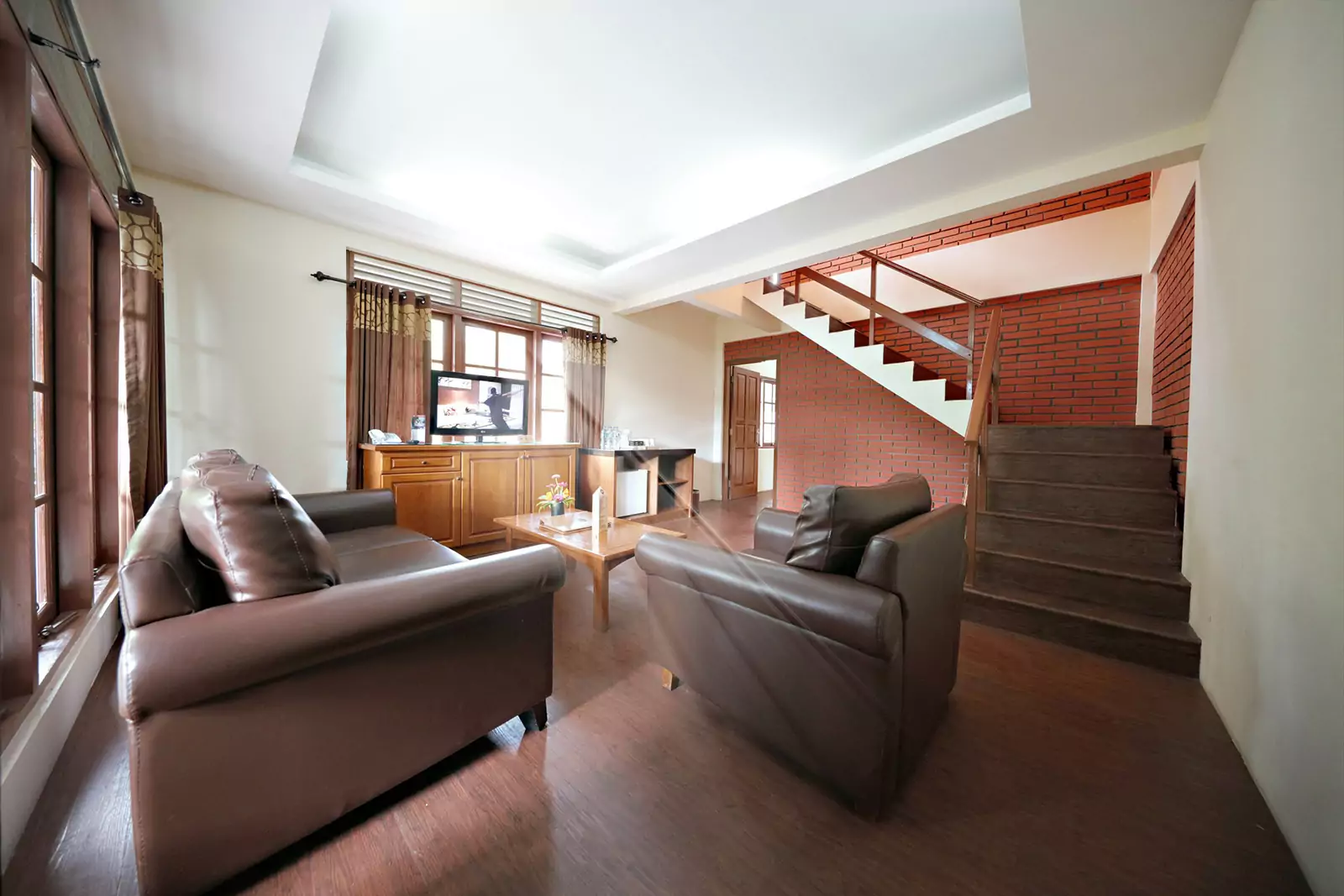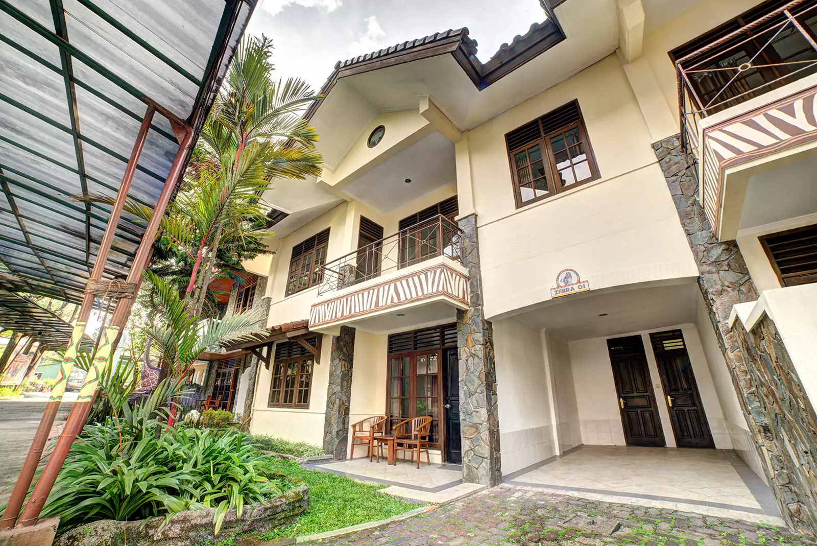 Grand Deluxe Zebra Three Bedrooms blends traditional architecture with modern comforts, surrounded by lush gardens and Swan Lake for a serene ambiance. Featuring a terraced house design, private garage, and spacious dining & seating areas, this bungalow is perfect for families or groups. Conveniently located near the Hydroponic Garden and Recreation Area, it offers easy access to various activities.